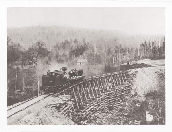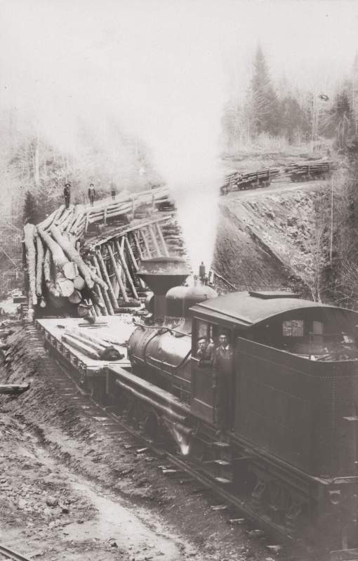 This train ascends the Woodstock and Thornton Logging Railroad full of loggers…