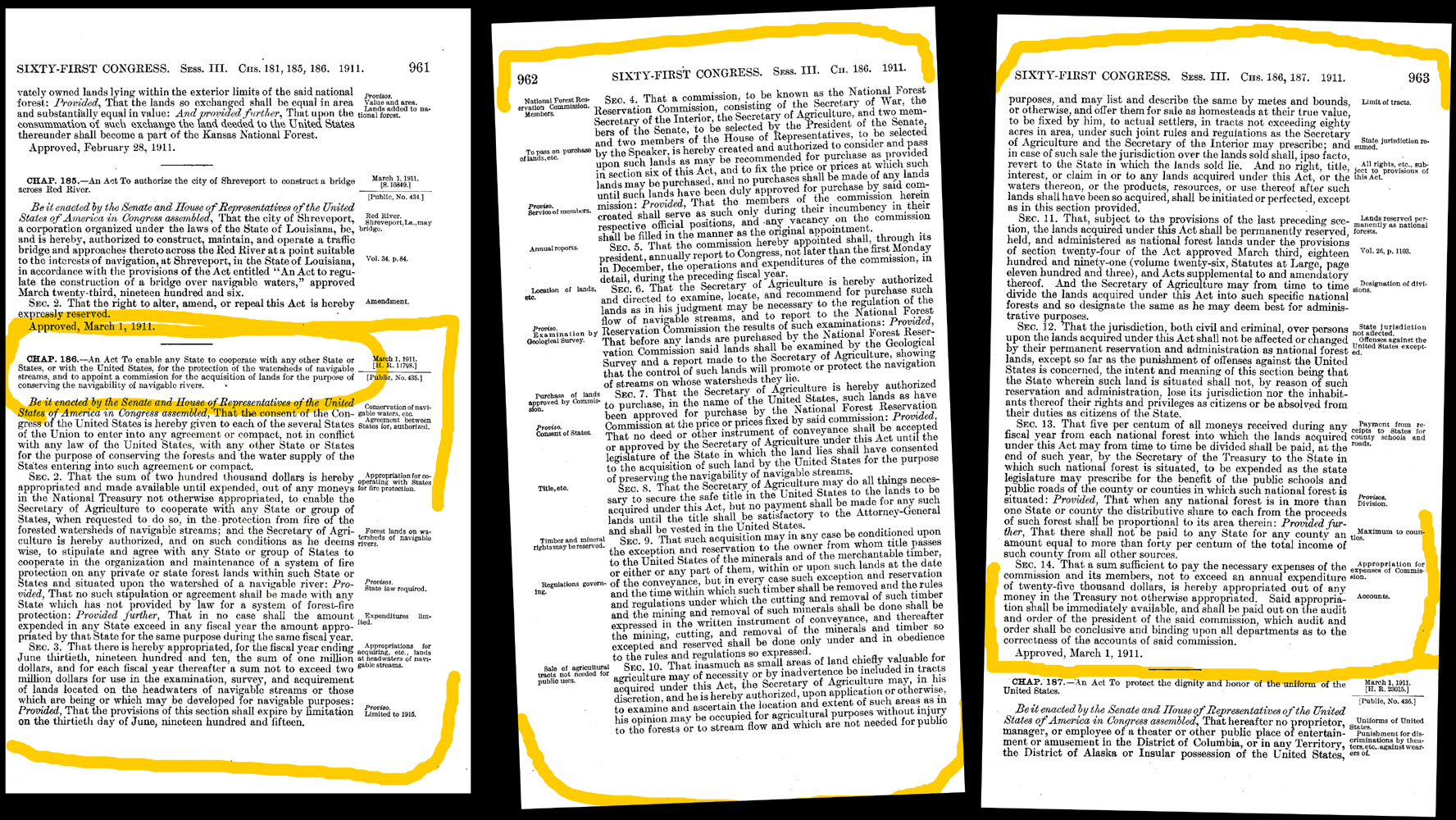 TEXT SOURCE: The “Weeks Act of 1911.” / 61st CONGRESS / SESSION III / CH.186 / p.961-63 [LOC.gov]