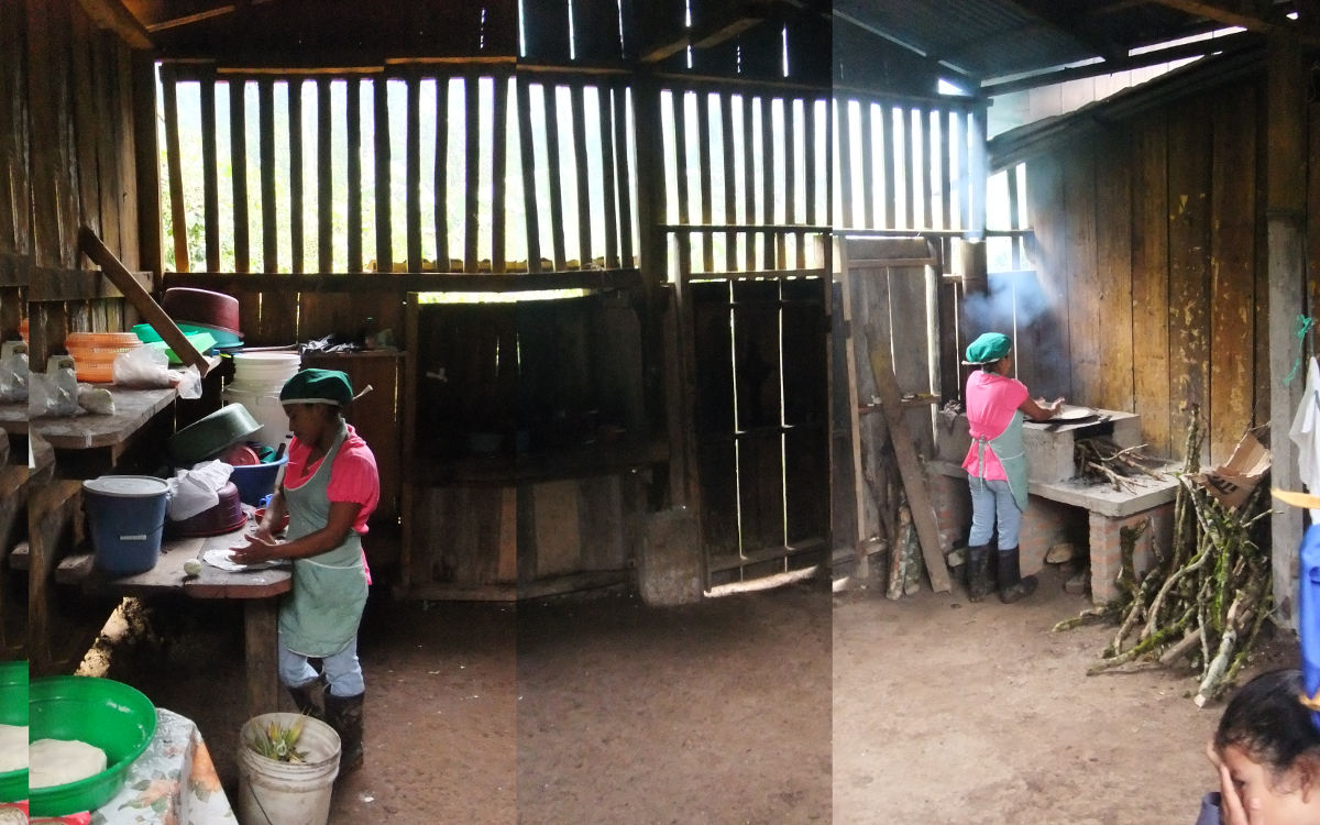 Here’s our camp kitchen, built via the Planting Hope Coffee Camp program; the morning tortillas are fresh off the pan:
