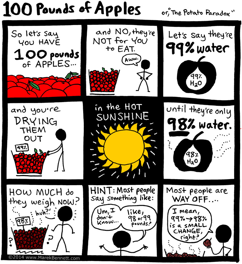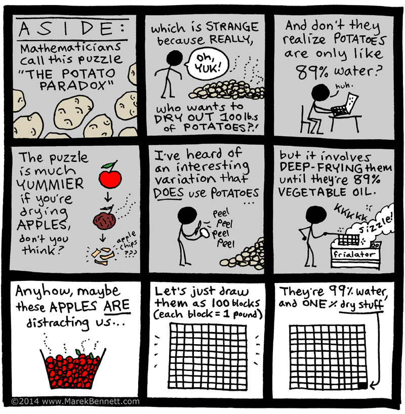 Here’s a delicious puzzle with a counter-intuitive result, based on the all-around ill-named “potato paradox”: