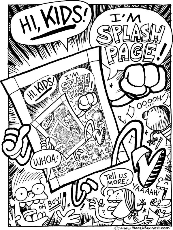 I use splash pages (& panels) as covers & story-starters, & on many other pages of my comics…