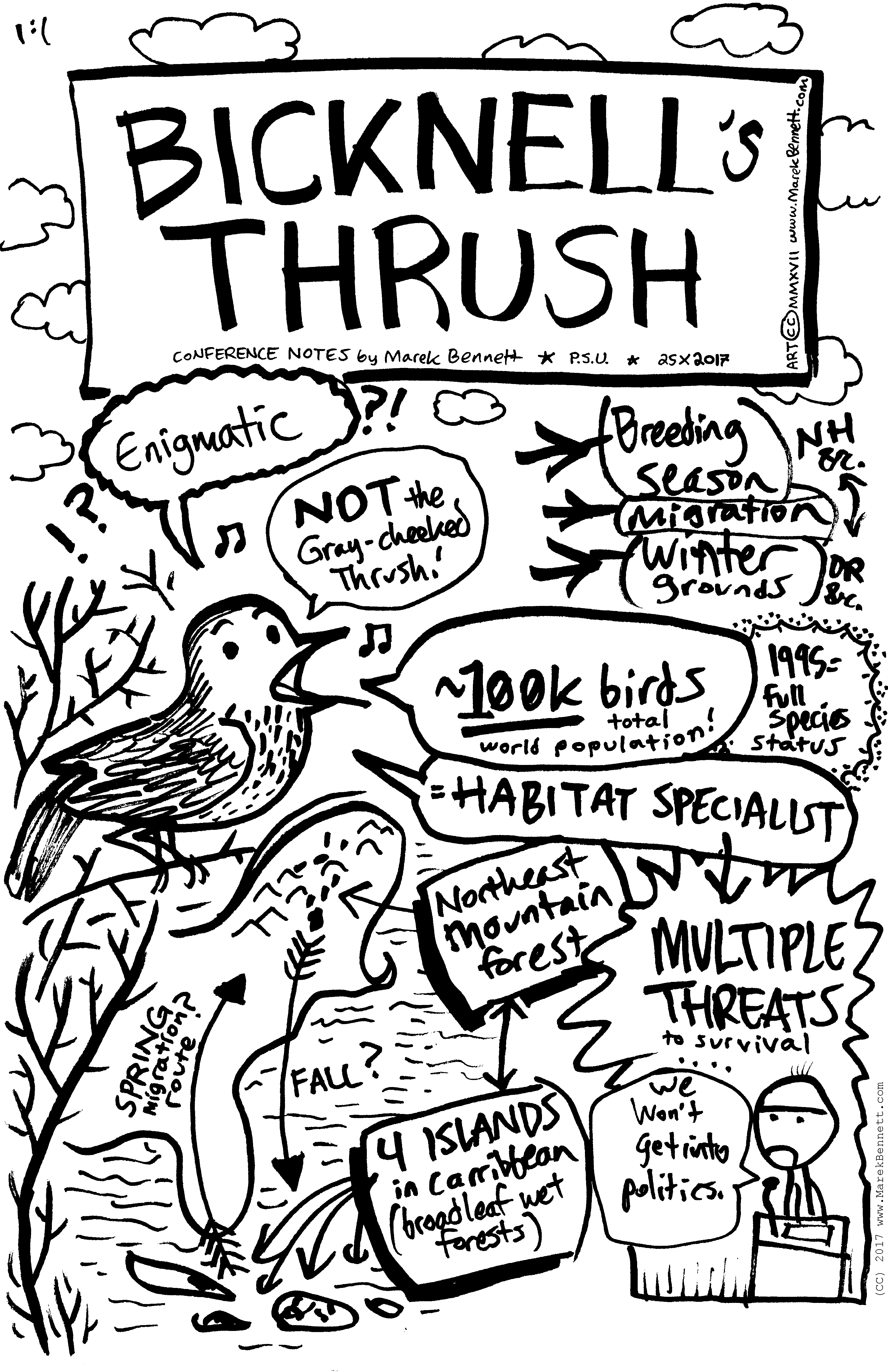 Live-drawn at the FOREST TO FOREST Bicknell’s Thrush Conference (“Exploring A Wicked Conservation Problem” / Wednesday, 25 Oct. 2017 / Merrill Place Conference Center, Plymouth State University / Plymouth, NH).