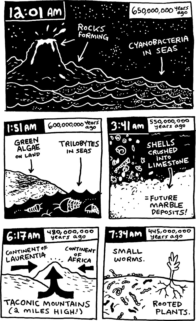 ⏲ This comic maps 650,000,000 years onto a single 24-hour day, to better show geological sequences & historical relationships…