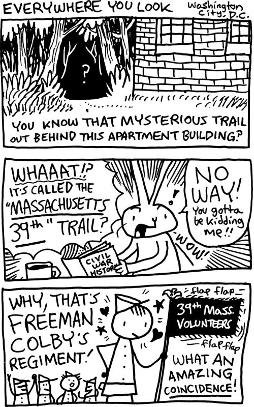 32 pages of diary comics, drawn while exploring Civil War historical sites & battlefields… A behind-the-scenes look at Rabbit’s footwork & research for Freeman Colby Vol. 3 (1864).