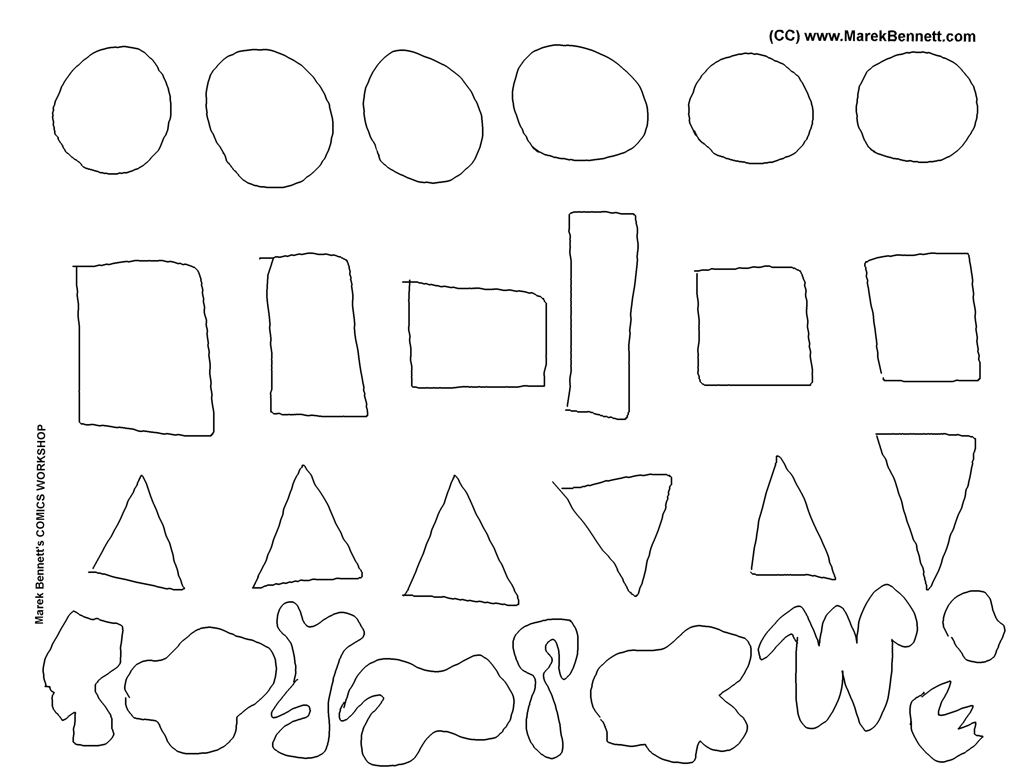 1. You & a friend can each print the same shape-sheet, then fill in the shapes & surprise each other with the results. (You can rotate your page any which way, too!)