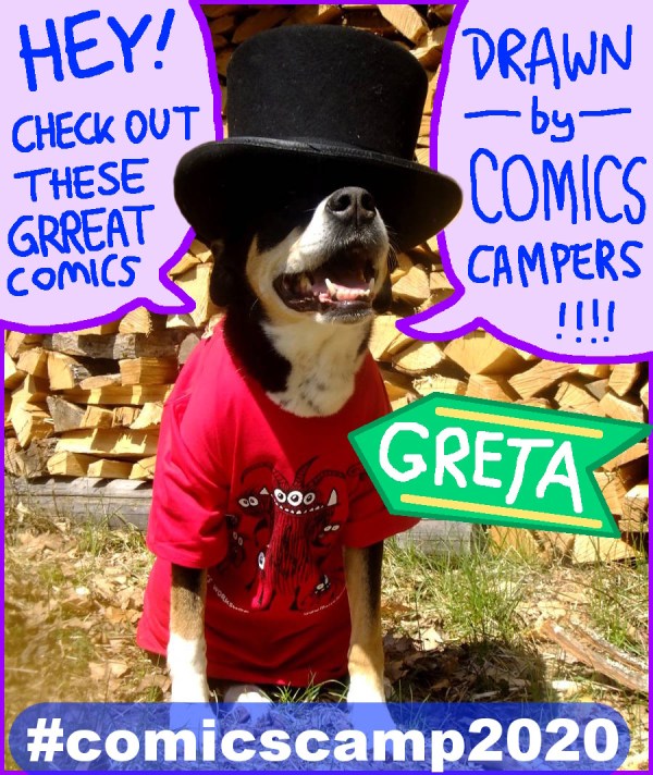 A Note from GRETA (COMICS CAMP Editor-in-Chief): “Woof woof woofa-woof! (Send me your comics for the gallery!)”