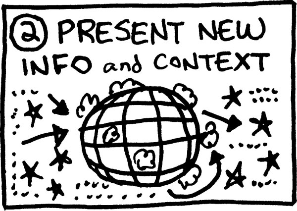- Artists may benefit from a prep session with a KWL chart or similar non-comics graphic organizer.