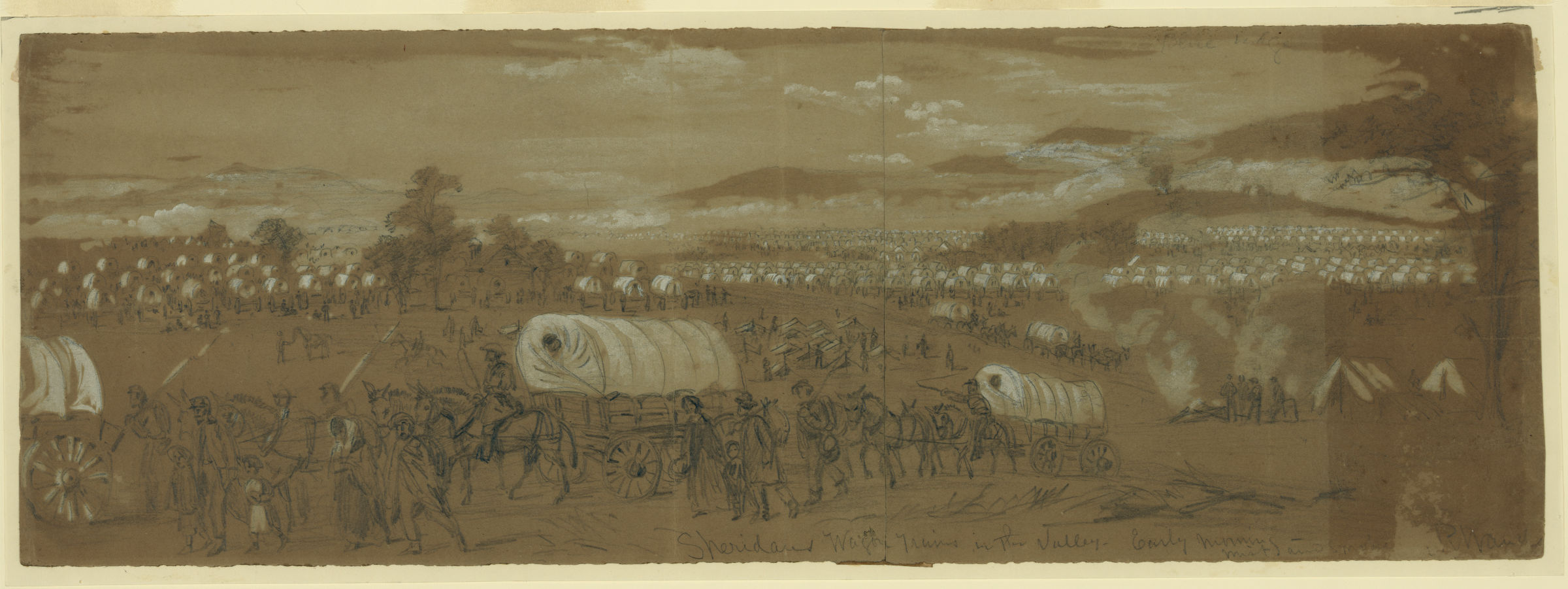 Here’s a useful sketchbook page by Alfred Waud, showing army supply trains: