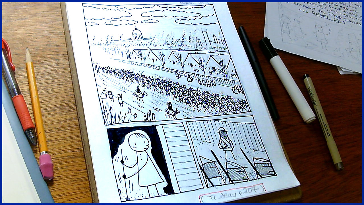 (I joked w/ my students that I could put 10 pages of this in the book, & just make minor changes to the background clouds & crowds… That’d be like watching an entire regiment march by!)