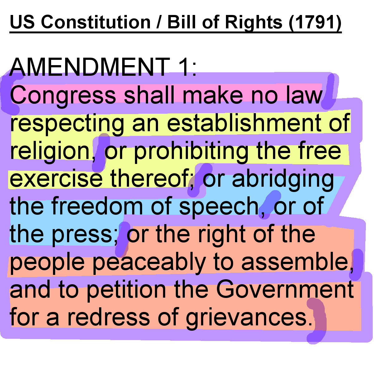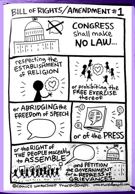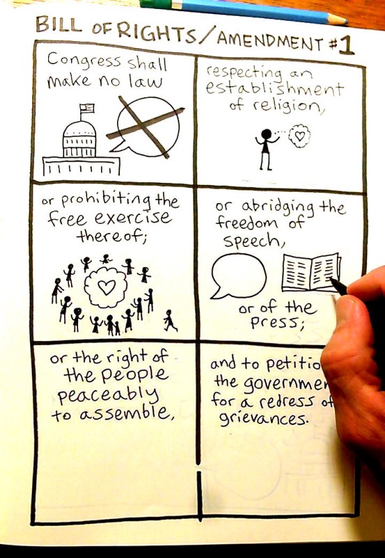 The first 10 amendments to the Constitution establish fundamental rights of citizens, & dramatically limit the government’s powers. (It’s especially fun to cartoon Supreme Court cases that “wrangle” with these rights.)