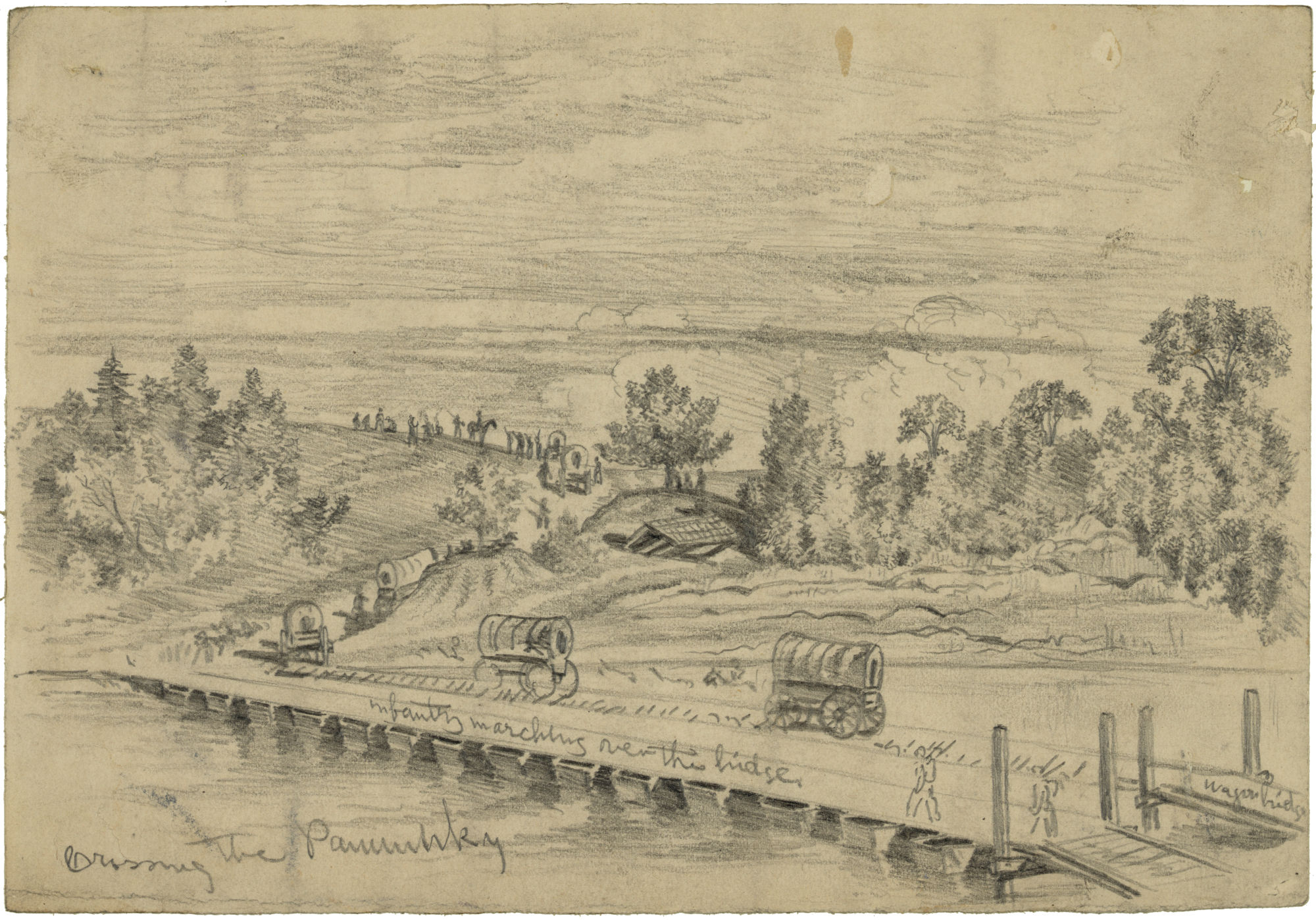 ^ “Crossing on the Pamunkey–at Hanover Ferry” (Waud / ~27-29 May 1864) [LOC.gov]