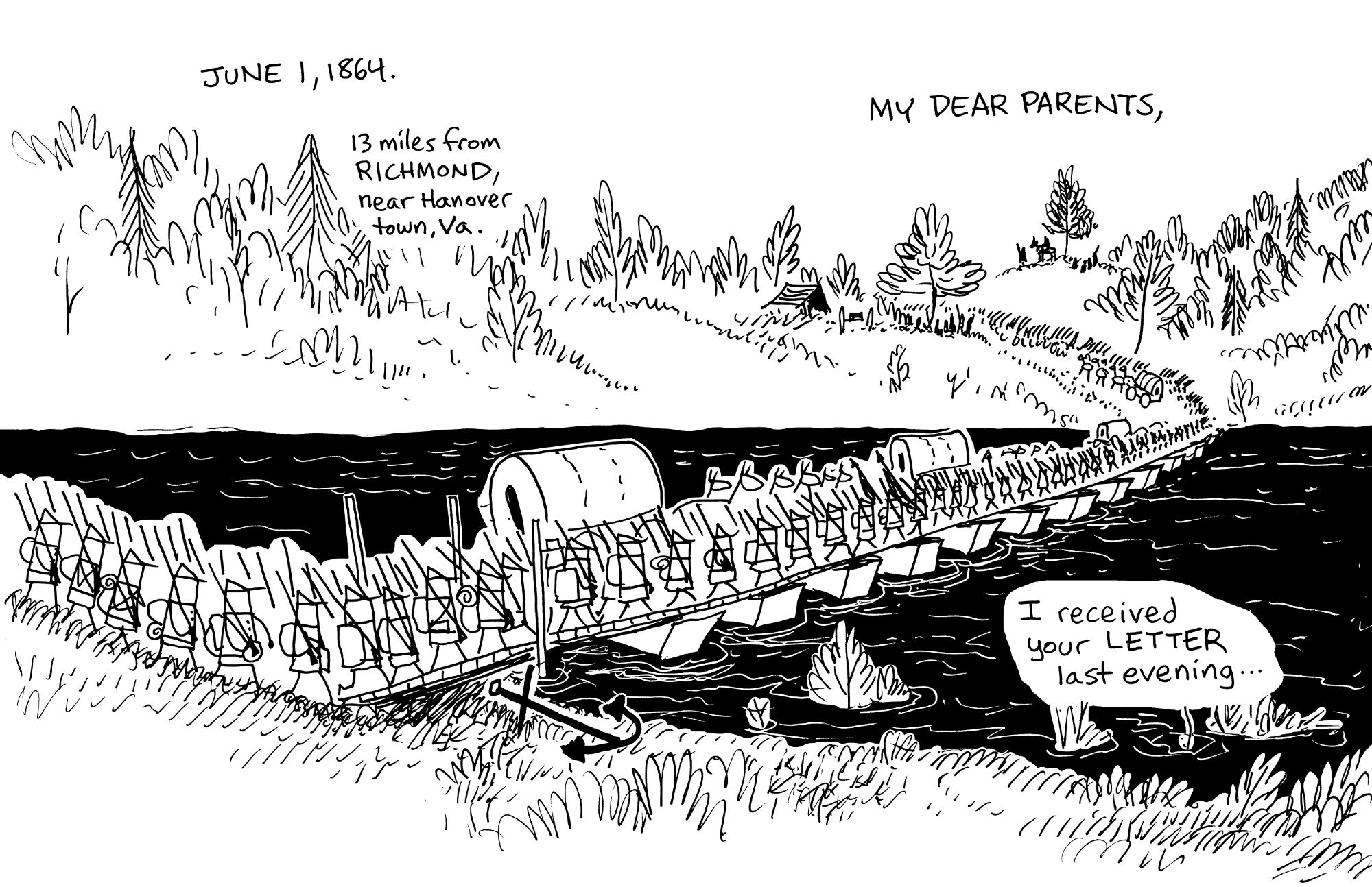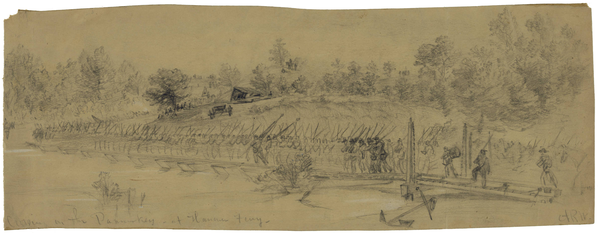 Fortunately several “Special Artists” were on hand to sketch the army crossing at Hanover Ferry: