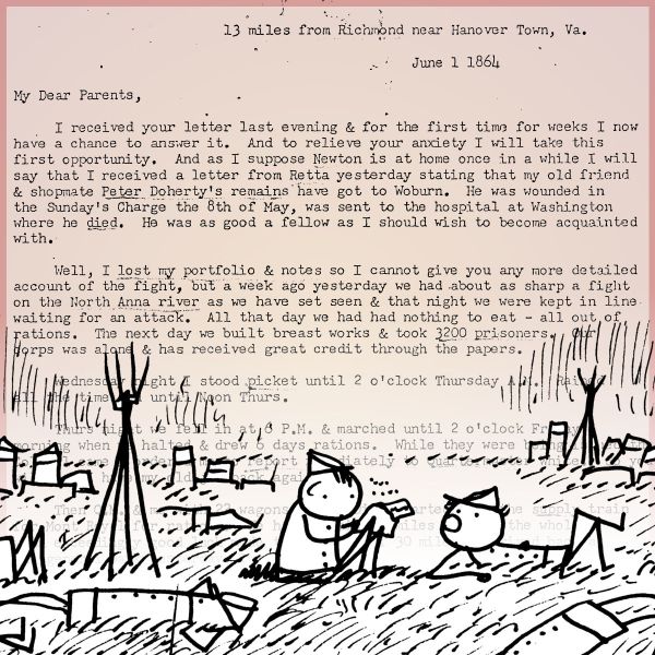 - 1 June 1864 / Hanover Town, Va. / “I received your letter last evening & for the first time in weeks…”