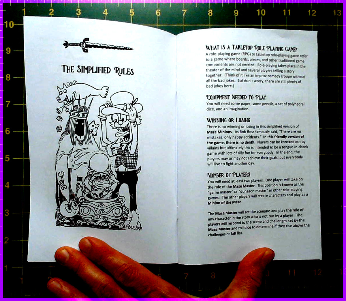 “Maze Minions is a zine role-playing game giving players a chance take on the role of a monster protecting their boss and their dungeon home from pesky adventurers. A supplement to the award-winning Mazes TTRPG, this zine expands on the original game, giving players more options for character creation, and MC’s more scenarios to create.”