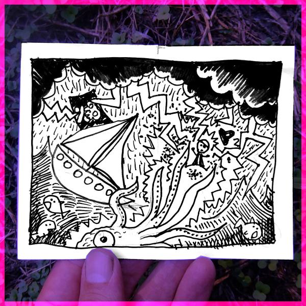 A stormy summer evening comics jam, drawn with artists at a library event…