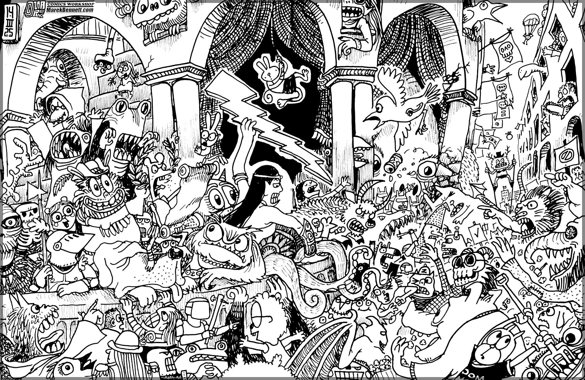True — These are BIG PICTURE doodles so often the same old characters come out to play in the new scene!