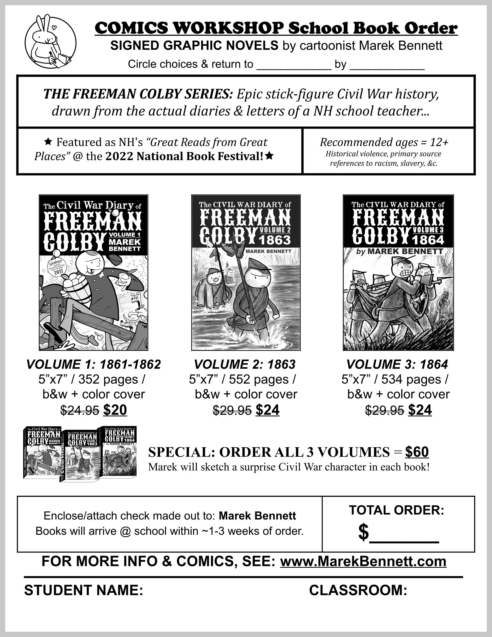 COMICS WORKSHOP offers special pricing for schools, libraries, & non-profit program hosts — including student & family orders placed through host schools.