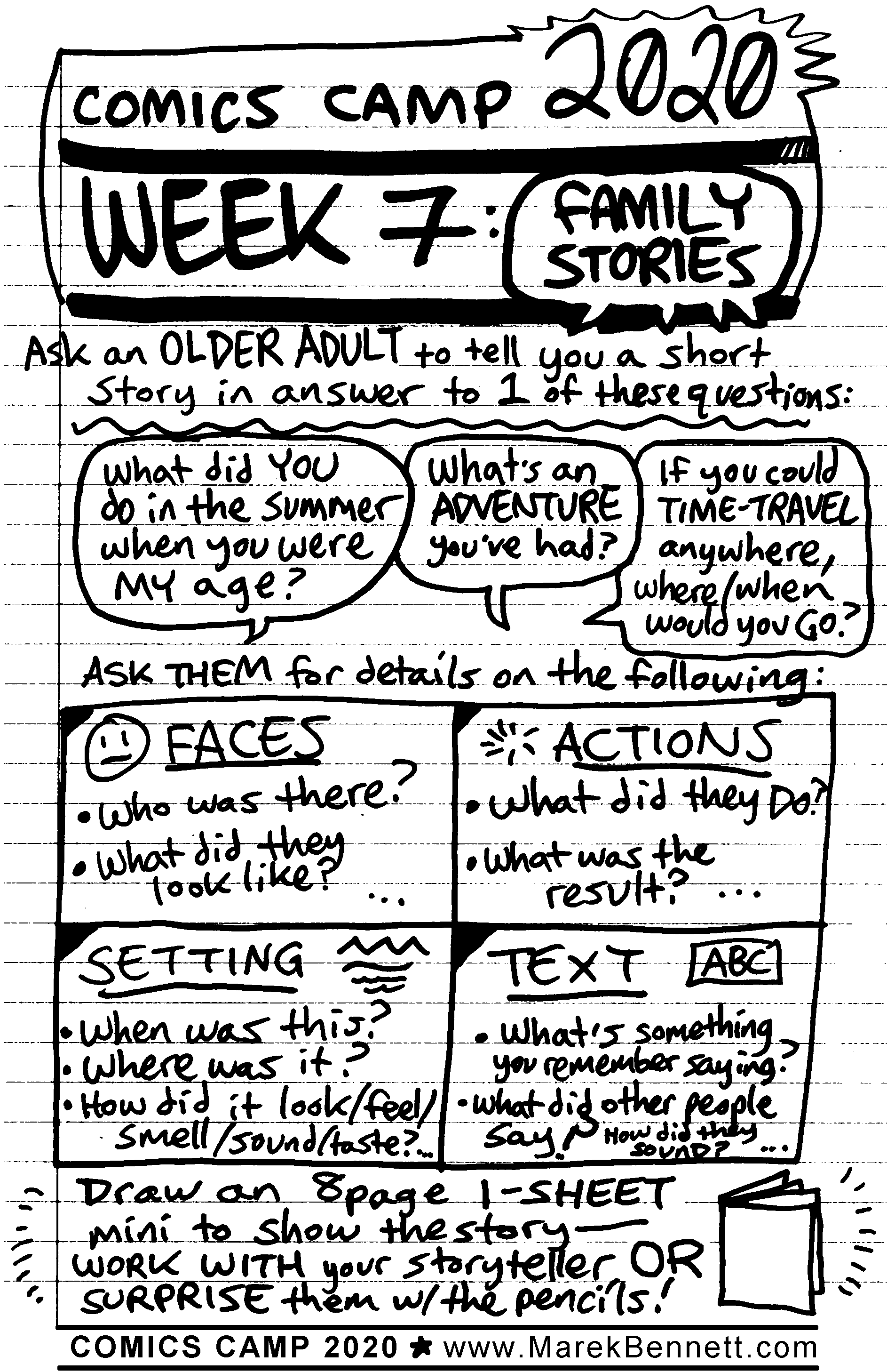 WEEK 7: We have tons of public library live-draws going on this week — See below for registration info. We’re also drawing comics from family stories — the memories & histories we share with the people closest to us!