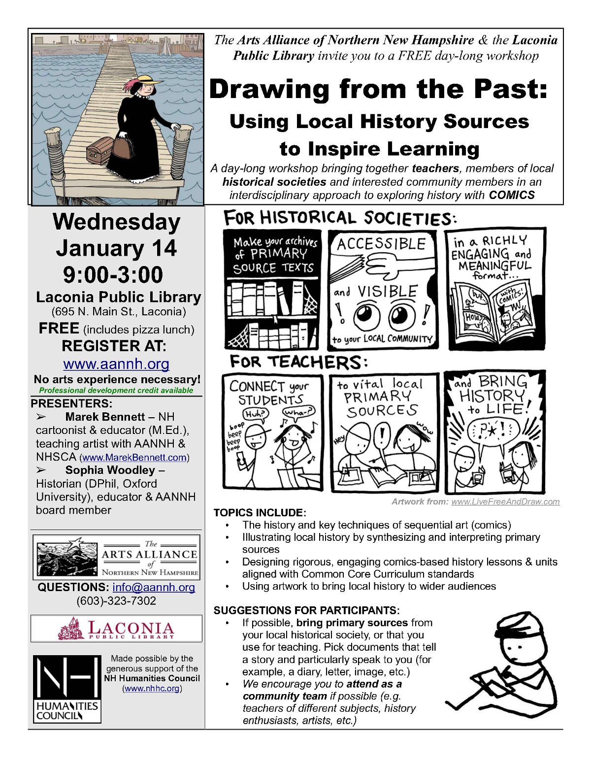 14 January (Wednesday) Laconia, NH ~ Laconia Public Library NHHC Teacher Training: “Drawing from the Past” (REGISTER HERE >> ) POSTER: w=1200 / w=800 .