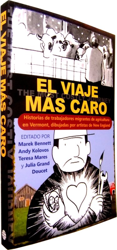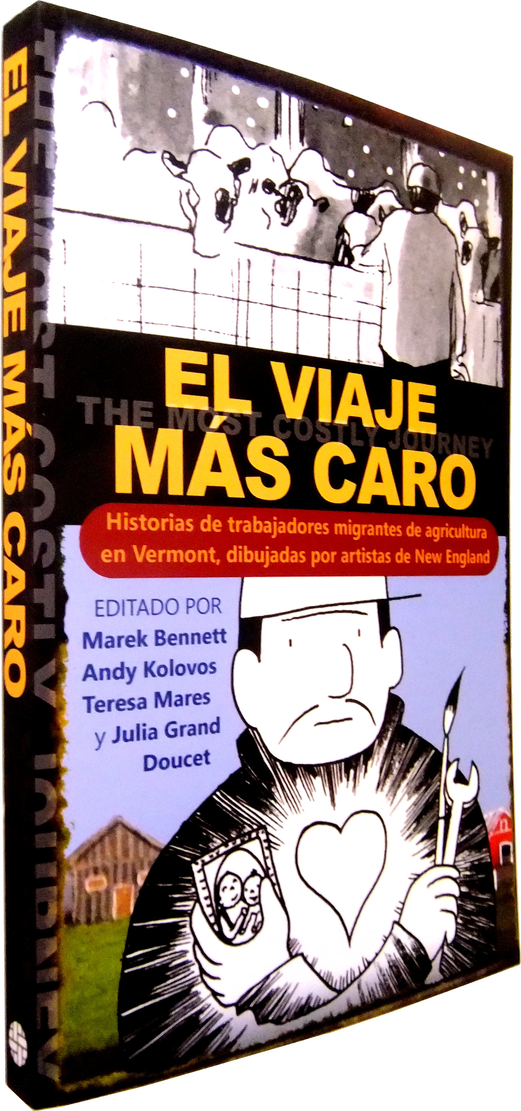 The Most Costly Journey is a non-fiction comics anthology of stories told by migrant Latin American farmworkers working on dairy farms in Vermont, and drawn in collaboration with cartoonists from New England (& elsewhere). It is part of a graphic medicine and ethnographic cartooning initiative aimed at addressing the mental health care needs of migrant workers on Vermont dairy farms. The volume features 19 comics adapted from stories recorded from migrant workers that address topics including, loneliness, isolation, separation, depression, substance abuse and other topics. Many of these stories are difficult, even traumatic, showing the sacrifices and struggles of the people whose marginalized labor actually drives the US agricultural system. But they’re also joyful – celebrating survival, family, community, and the ability of each storyteller to direct their own healing narrative.