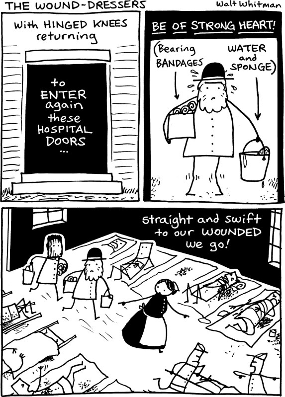 “The Wound-Dressers” (Walt Whitman) = Whitman’s poem gives us an intimate glimpse into a Civil War hospital ward.