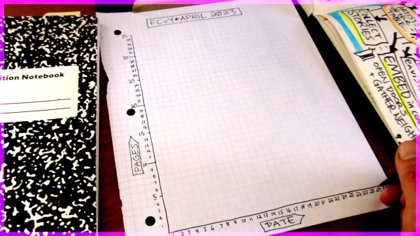 At the end of each day, I color in the number of pages I drew on that day. For examples, see: