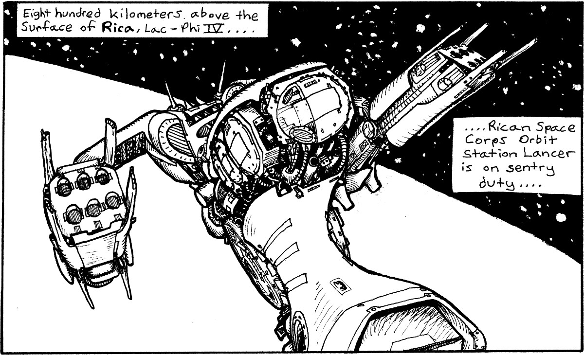 “Chester wakes up in the brig of Orbit Station Lancer, prisoner of Captain Reeves! Meanwhile, down on planet Rica, Jules and Sylvie look for a lift….and find danger at every turn.”