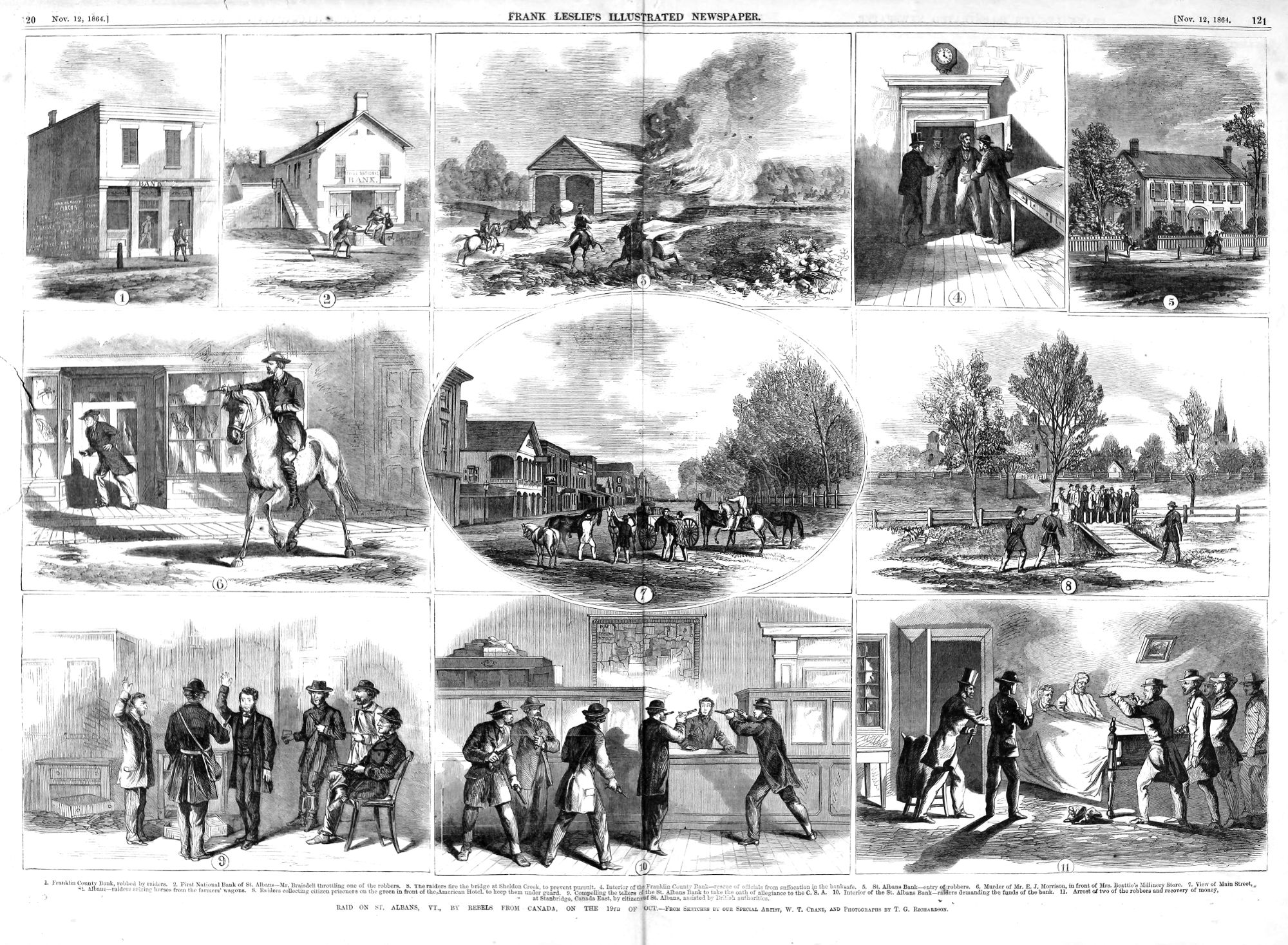 Also: Frank Leslie’s 12 Nov article: “We devote a large space, this week, to illustrations of the recent rebel raid upon St. Alban’s, Vermont.”