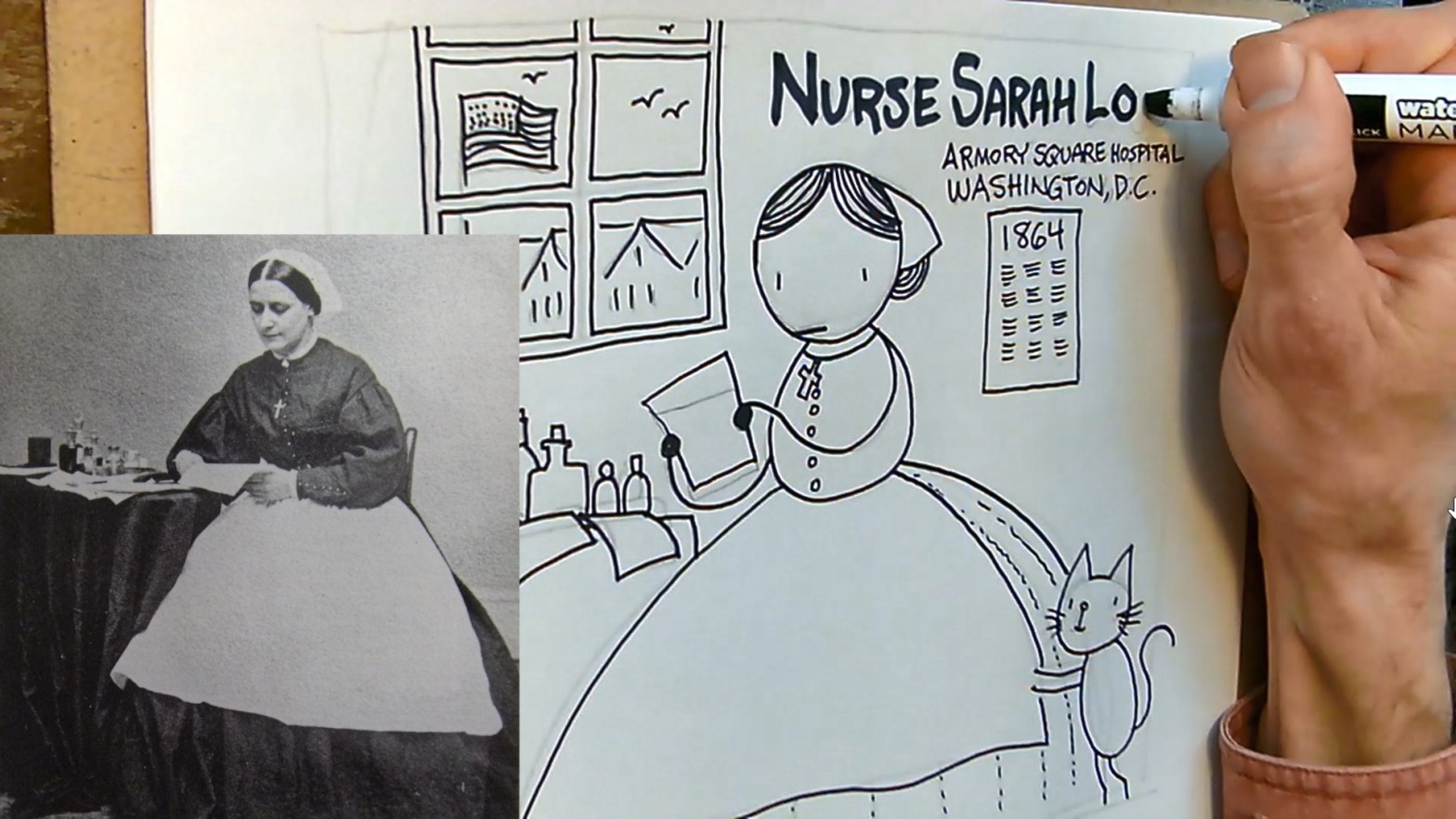 Draw along as Marek builds a splash page of nurse Sarah Low!