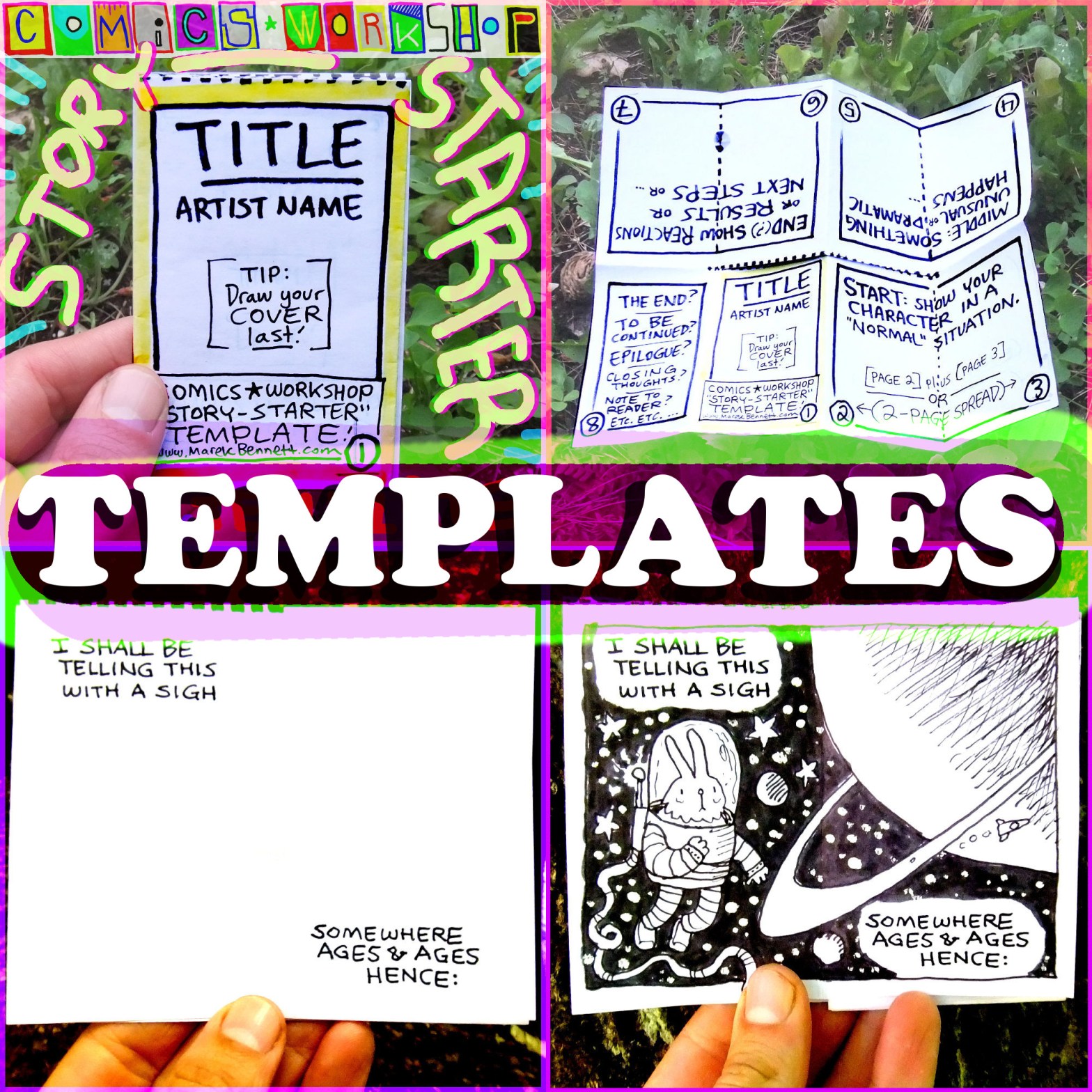 This template helps you create an EPIC ADVENTURE mini-comic!