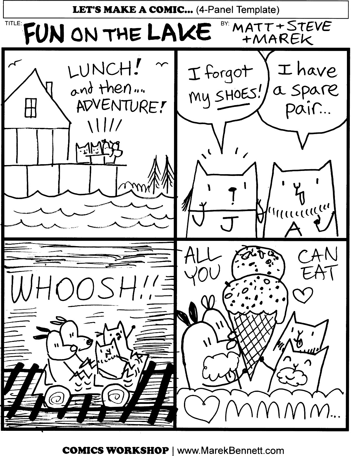 Here are some of the finished pages from our lakeside cartooning session! More will be posting throughout September as we finish inking… Thanks to our many storytellers.